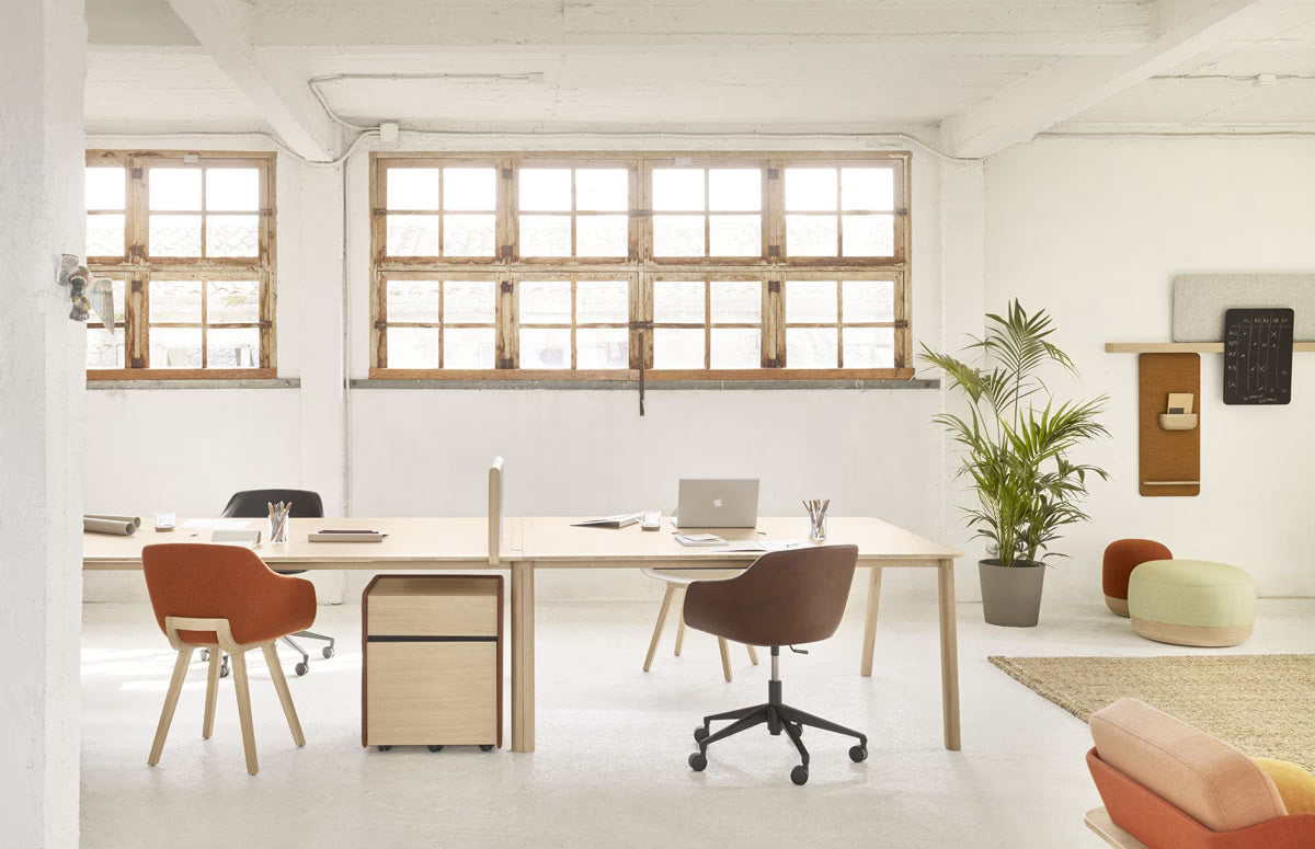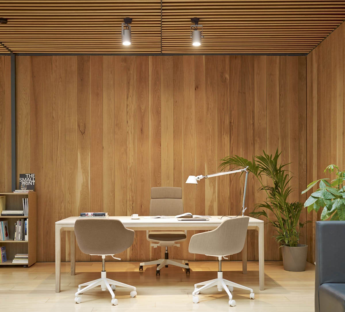 La chaise de bureau Kuskoa Bi apporte une lecture chaleureuse et professionnelle aux espaces tertiaires. Sa coque en bioplastique, mise au point pour obtenir une forme semi-concave enveloppante, existe en deux finitions d’assise : galette (coussin rapporté) ou dossier tapissé (intégralement revêtu), pour ajuster accueil et perception au poste. Le langage reste commun sur l’ensemble de la gamme : lignes douces, tapissage soigné, intégration facile en open space, salle projet ou direction.