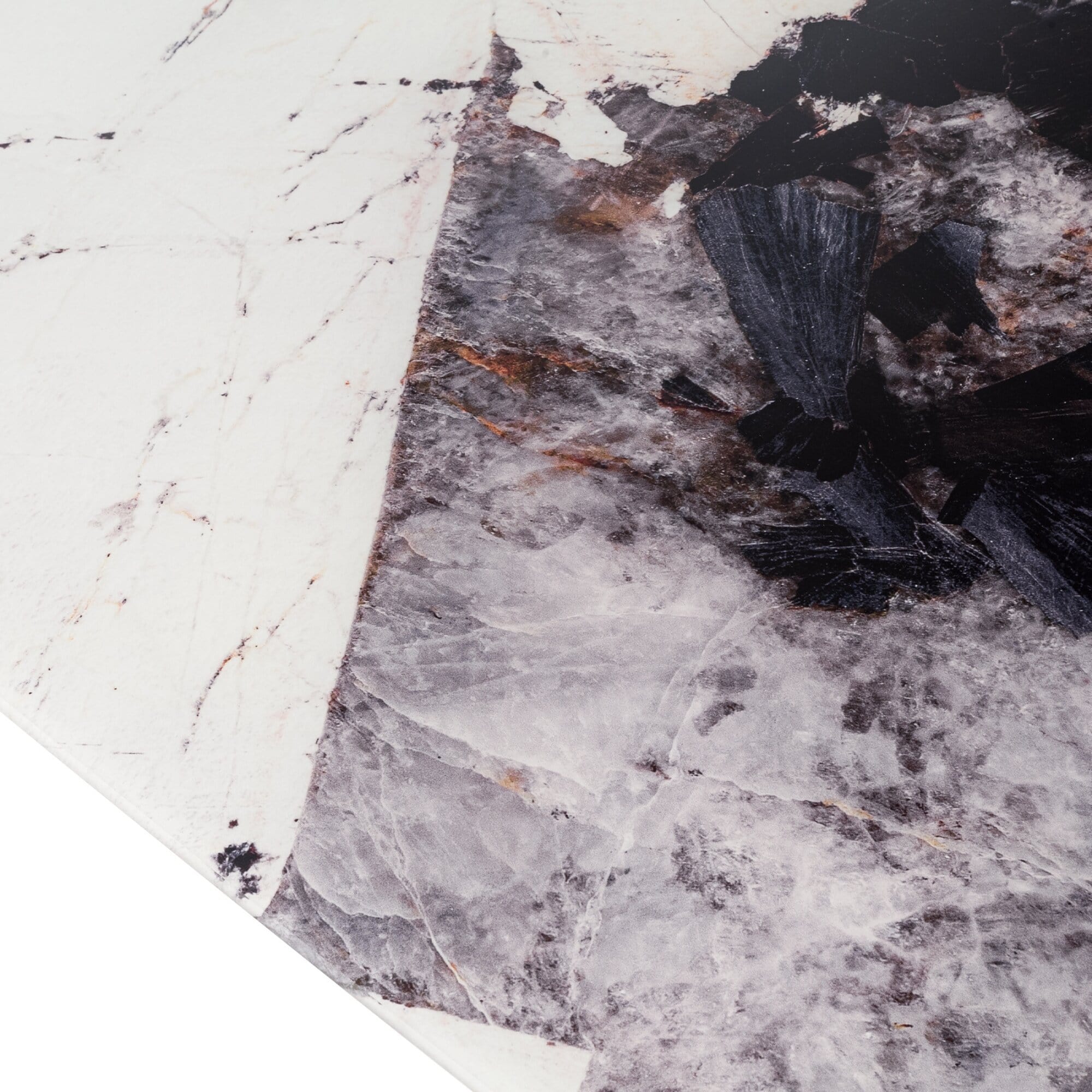 Bridge dining table, in oak, champagne metal & Patagonia printed glass