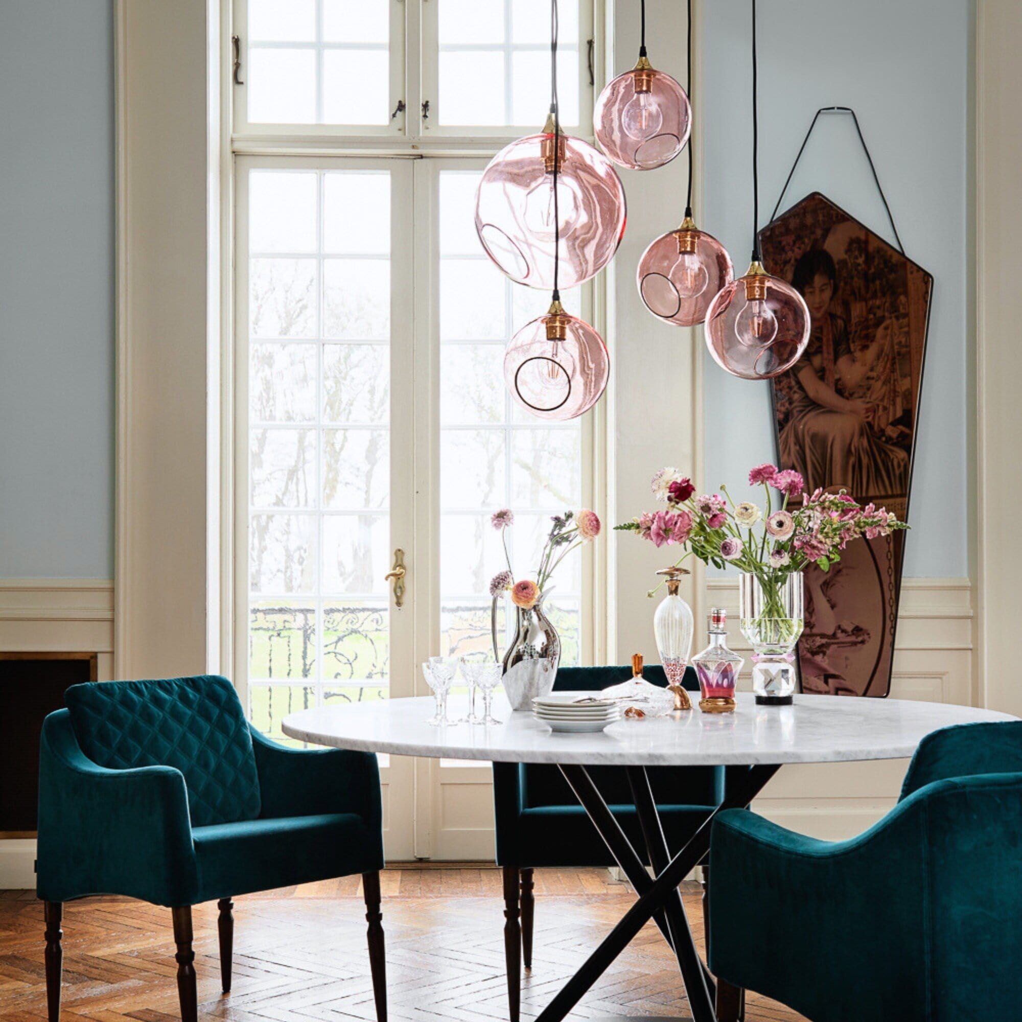 Lampe suspendue Ballroom, verre bleu et douille dorée