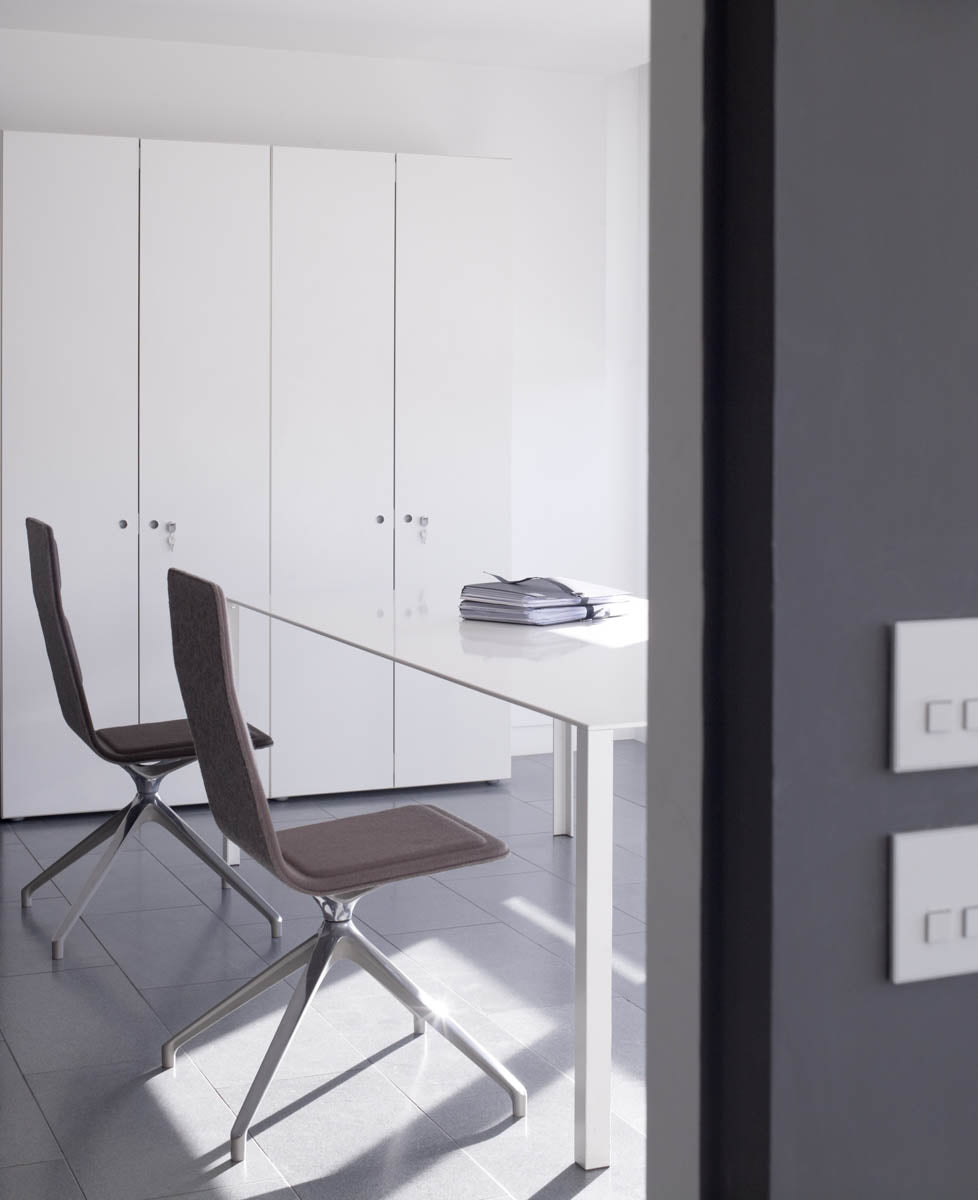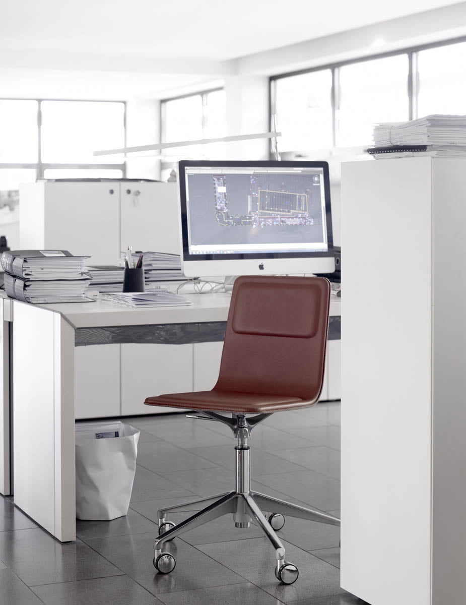Le piètement fixe apporte la stabilité attendue en réunion et en accueil, avec des alignements propres et un niveau sonore maîtrisé. L’assise giratoire permet de se tourner vers l’écran, la table ou un interlocuteur sans déplacer la chaise, ce qui fluidifie les échanges et réduit les manipulations. Entretien simple au chiffon microfibre ; finitions adaptées aux usages pro. Une chaise facile à exploiter, conçue et fabriquée en Europe.