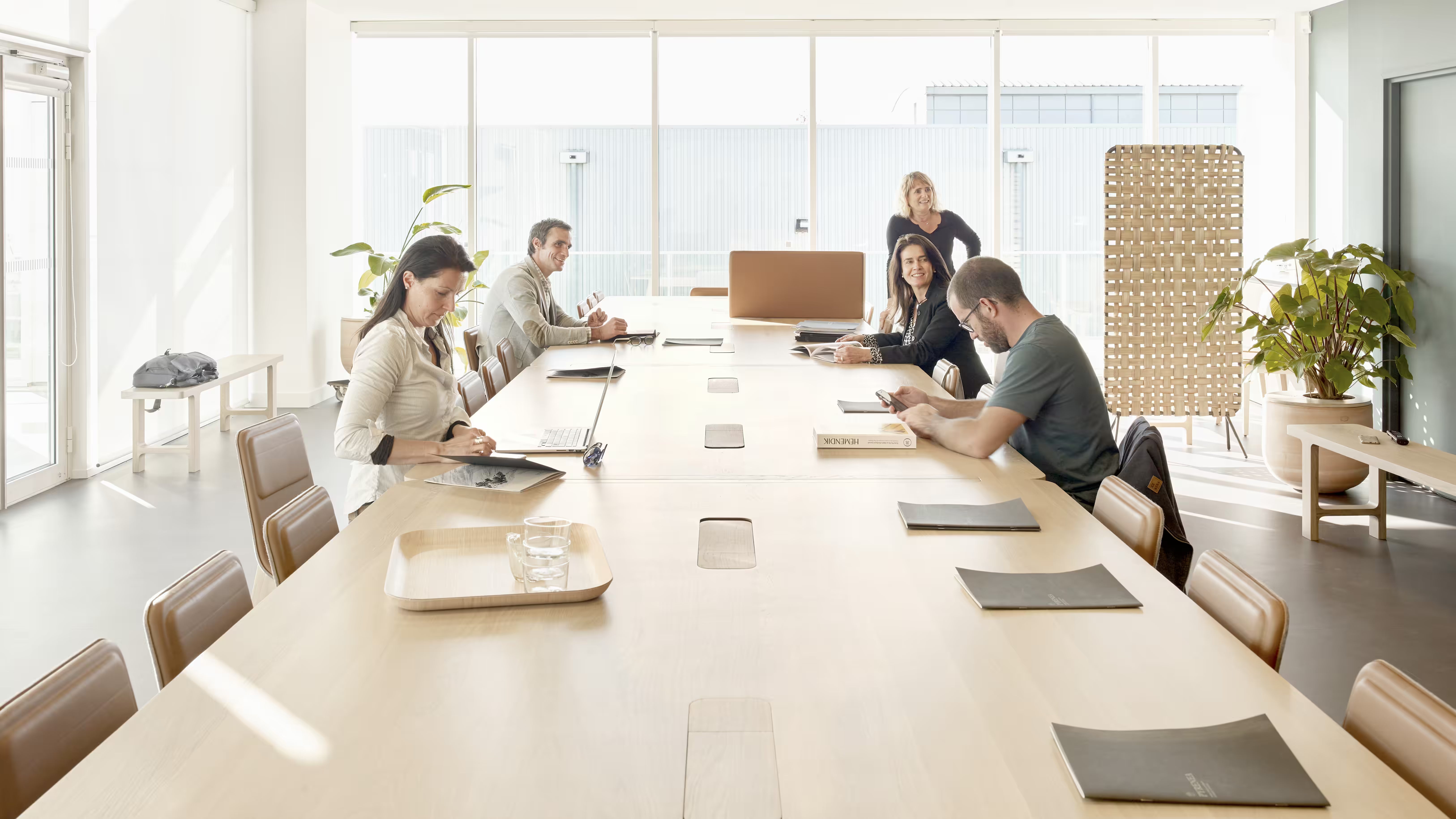 Assise giratoire sans roulage parasite : alignement propre des sièges, réunion plus calme, usure et maintenance réduites.