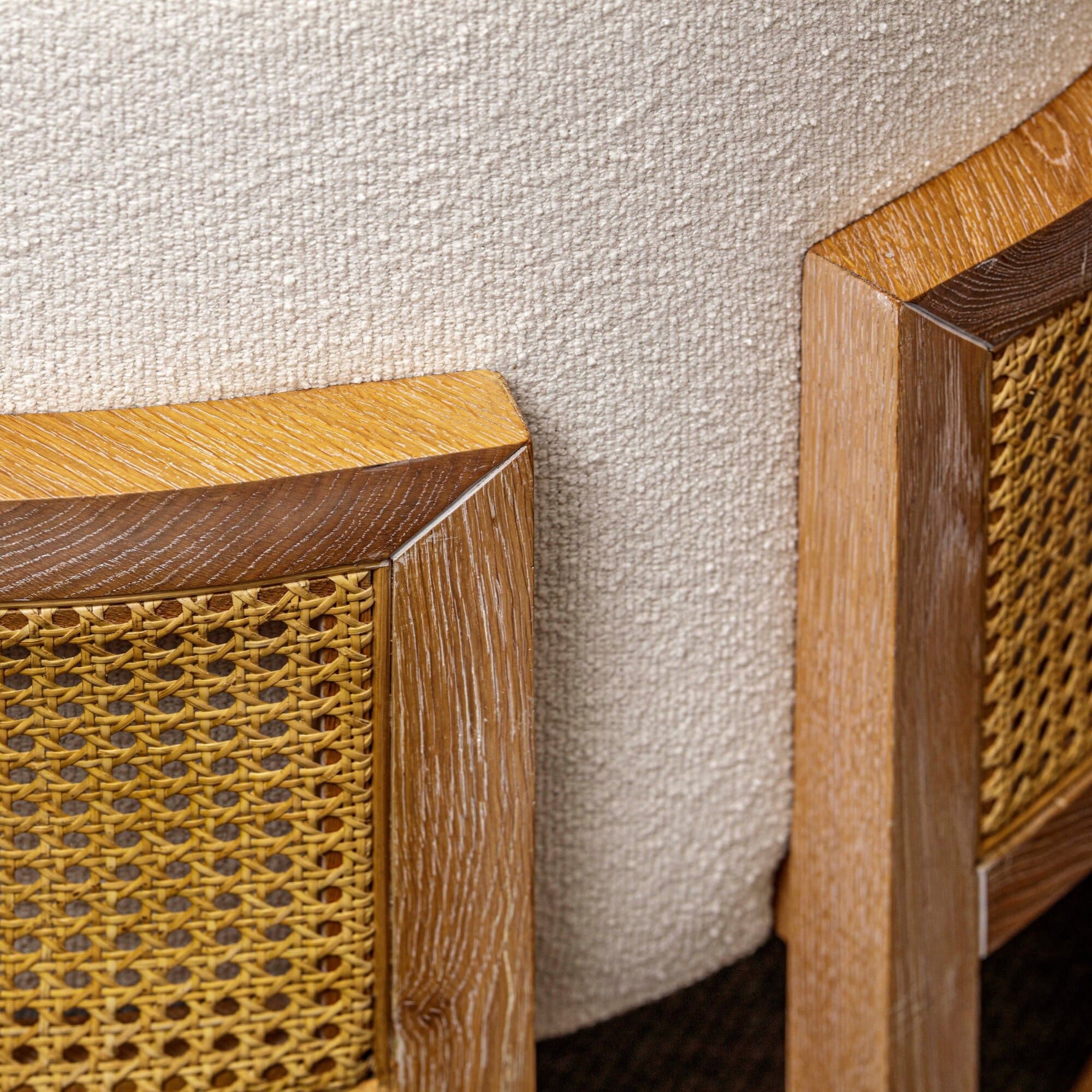 La collection Julius, avec ses fauteuils en laiton, en bois, et à cannage, incarne l'essence même du savoir-faire artisanal, alliant des lignes épurées et modernes à la chaleur et au soutien de matériaux nobles. Chaque fauteuil est confectionné avec une minutie exceptionnelle, mettant en avant la présence marquée de l'artisanat, que ce soit à travers le laiton qui enlace et soutient l'assise, le cadre minimaliste en chêne qui porte l'assise et le dossier courbés, ou les panneaux de cannage tissé ajoutant une touche artisanale supplémentaire.