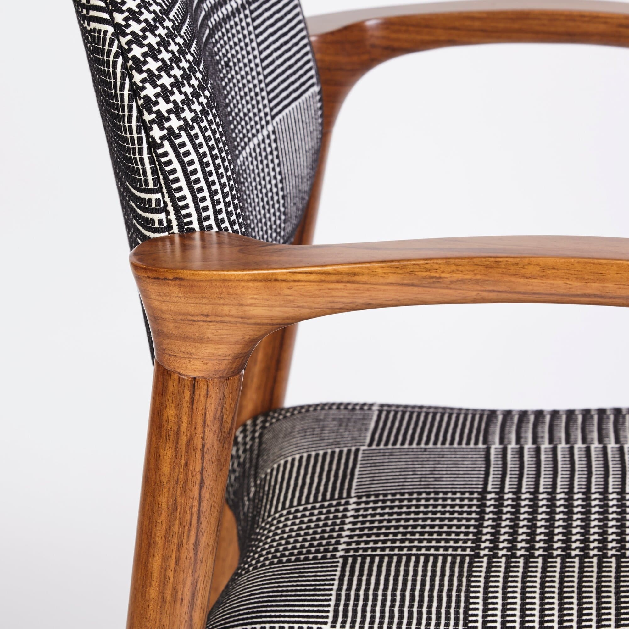 Chaise de repas luxueuse Tanoco, avec accoudoirs, en bois de Mutenye et tissu