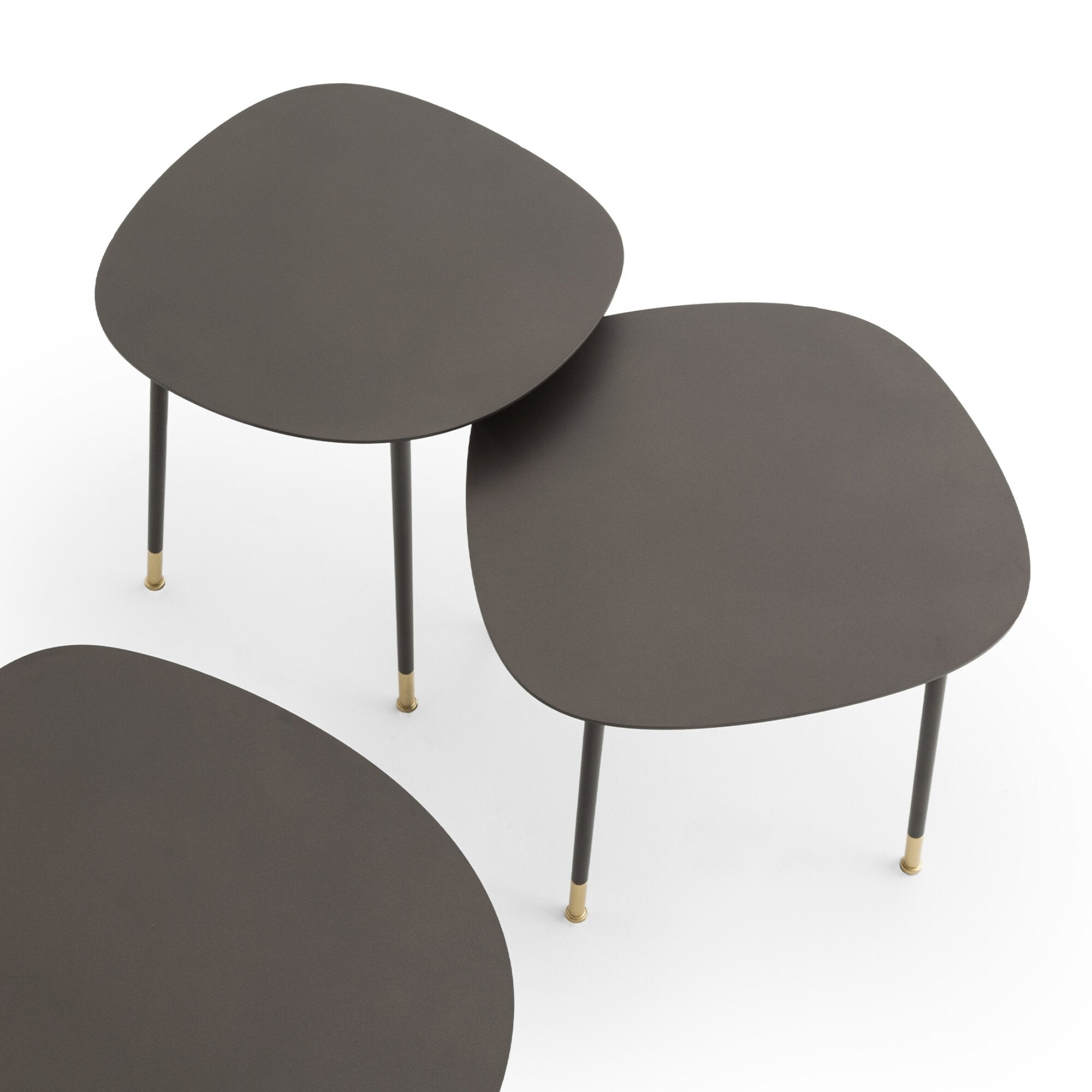 La collection Pebble de Morica Design est une ode à la nature, s'inspirant des galets polis par le temps. Chaque table exprime une beauté organique unique, avec des plateaux en verre rétro-imprimés effet marbre ou entièrement en métal bruni. Les versions en verre marbré ajoutent une touche sophistiquée et minérale, rappelant l'élégance brute des pierres naturelles, tandis que la finition en métal bruni apporte une simplicité audacieuse et industrielle. Les formes douces et irrégulières des tables semblent sculptées par la nature elle-même. Disponibles en diverses tailles et compositions, ces tables apportent poésie et élégance à chaque espace, qu'il s'agisse d'un salon lumineux, d'un bureau élégant, d'une chambre raffinée ou d'un coin lecture intime.