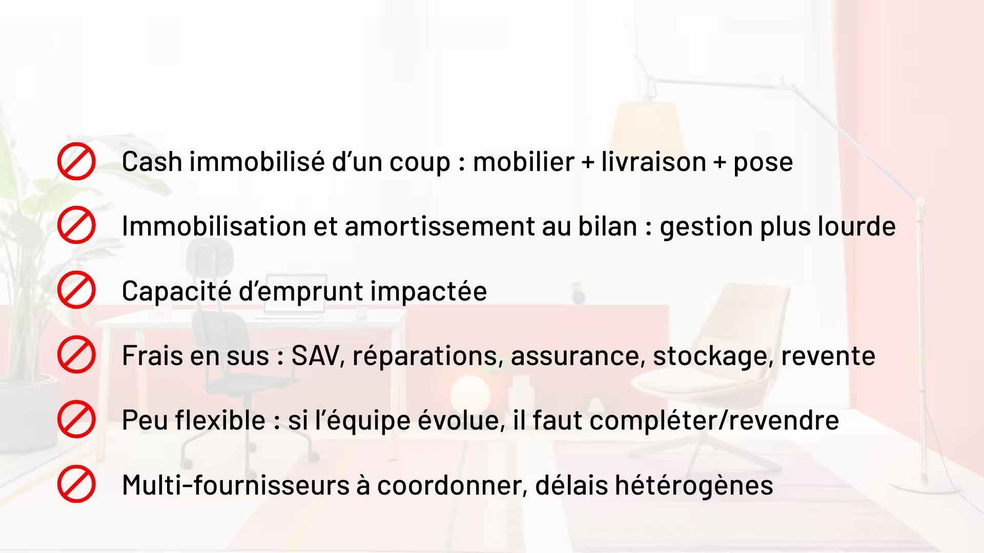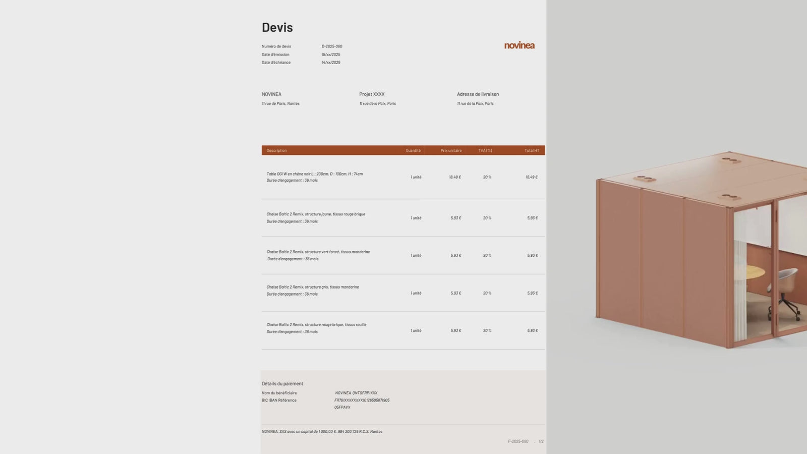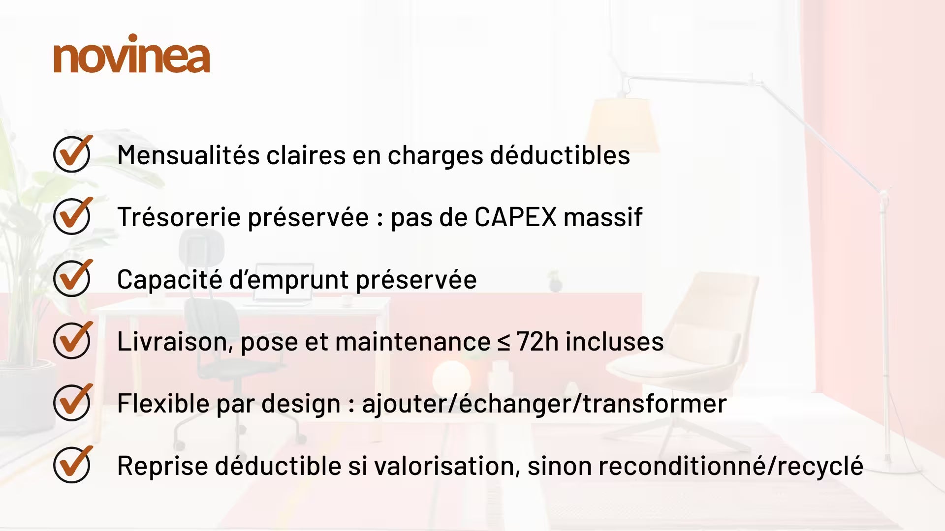 - Parcourez le catalogue en ligne (tables de réunion, chaises ergo, cabines acoustiques, cloisons…).