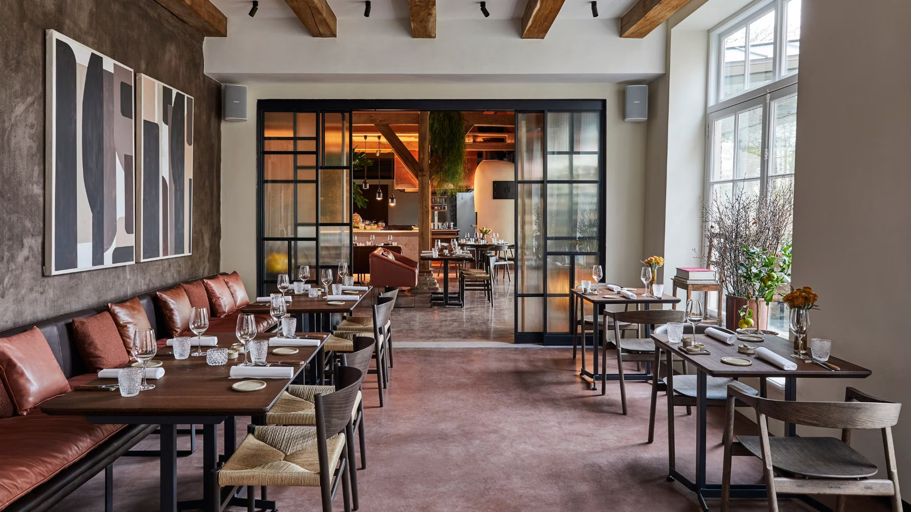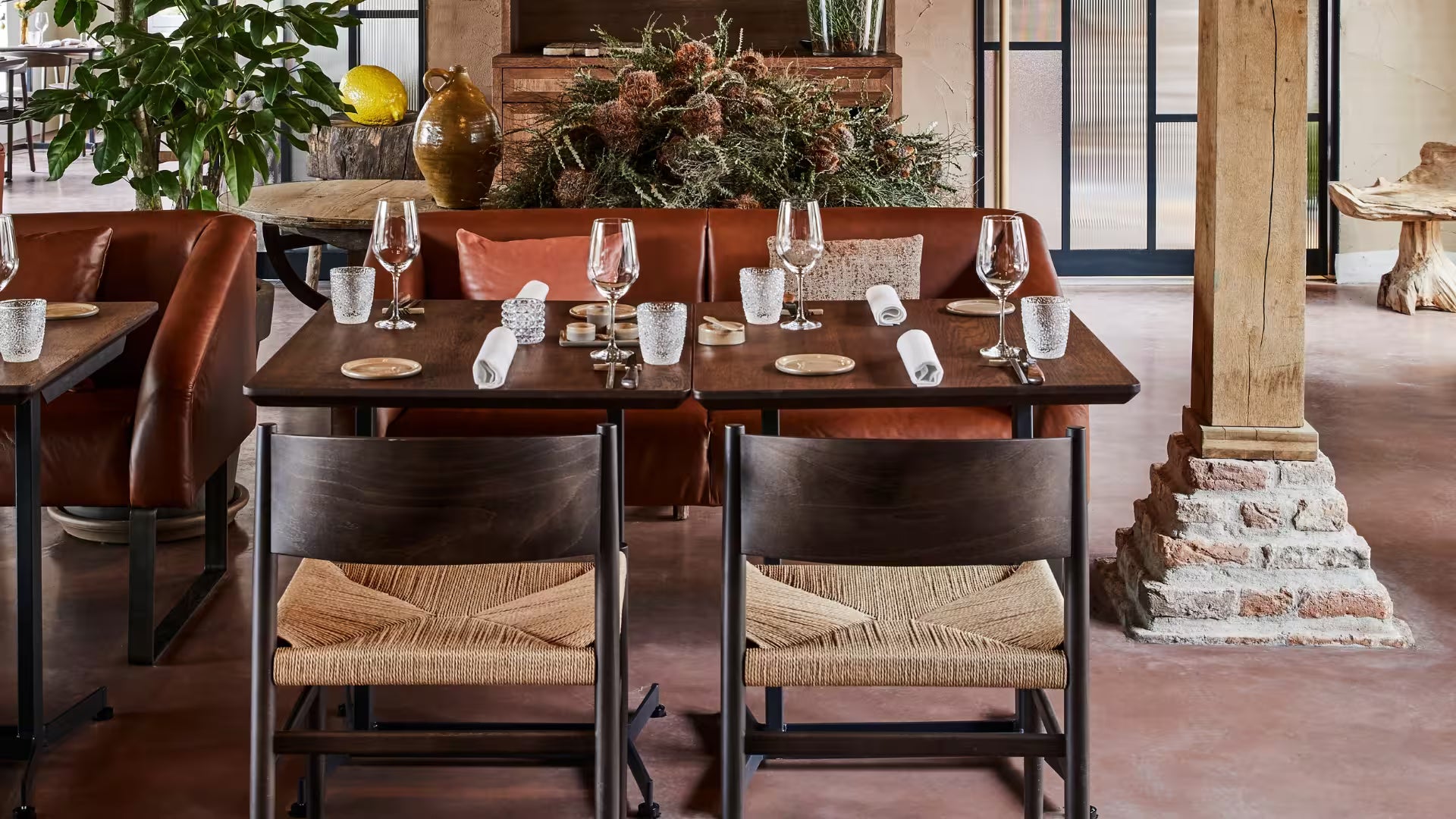 Carré ⭤ rond ⭤ ovale, des tables qui s’assemblent, bancs et banquettes : on densifie sans sacrifier le confort.