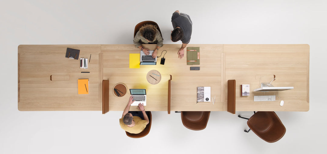 Nous opérons les espaces de travail en Furniture‑as‑a‑Service : conception, fourniture (mobilier neuf éco‑conçu + reconditionné), installation, maintenance, reprise, reconditionnement et réemploi de l'existant.