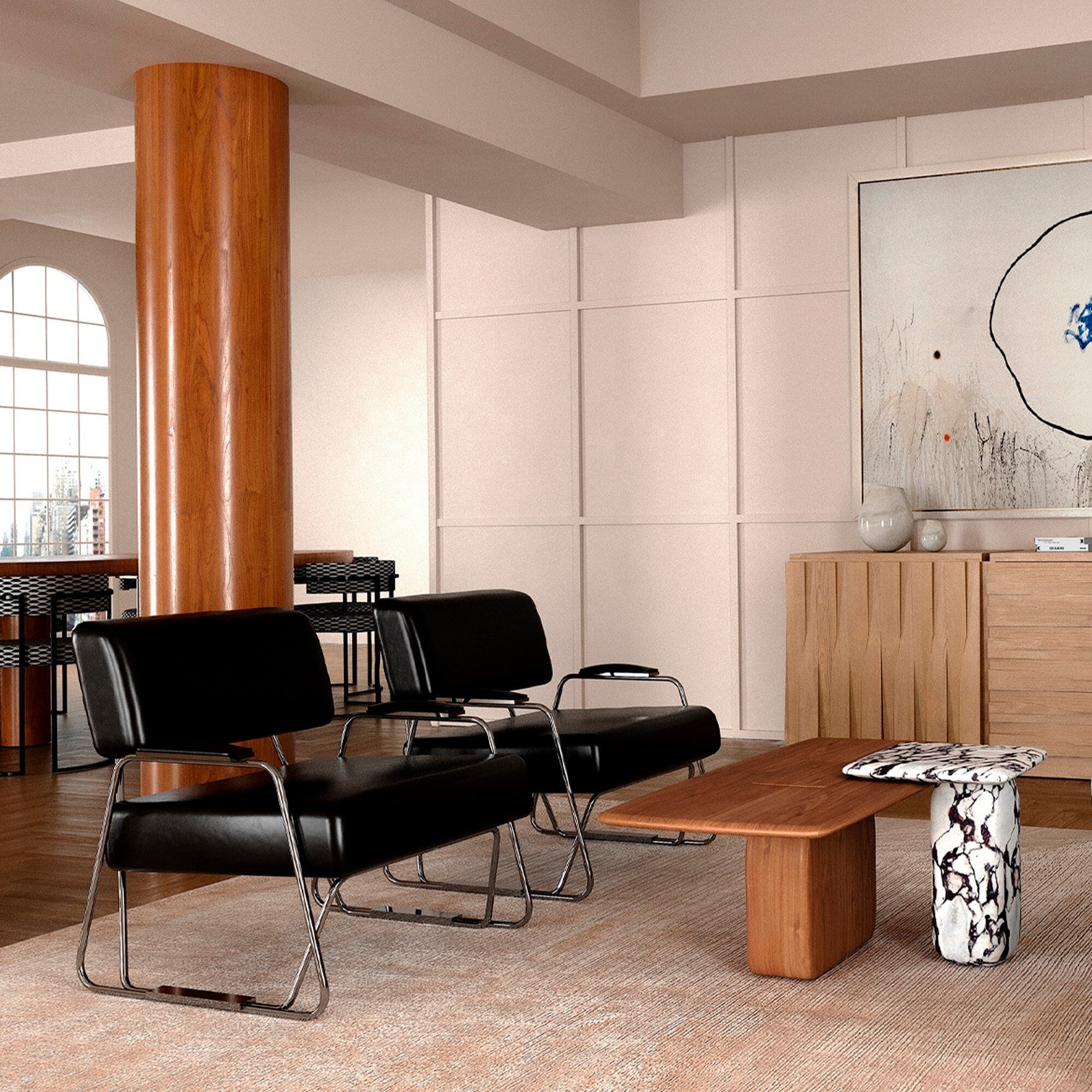 - Coin lecture ou détente : ce fauteuil minimaliste rembourré s'intègre dans un espace de détente ou bibliothèque, avec une allure apaisante et invitante.