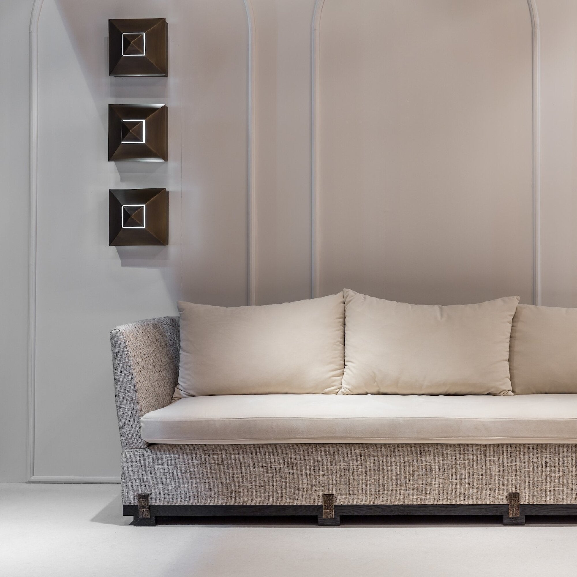 La lampe murale Stud allie subtilement modernité et artisanat traditionnel dans un design épuré et percutant. Sa finition en bronze léger crée une texture élégante qui capte la lumière avec subtilité, renforçant la dimension luxueuse de la pièce. Les lignes géométriques précises et son aspect minimaliste mettent en valeur une sophistication discrète, parfaite pour des intérieurs qui recherchent un équilibre entre fonctionnalité et esthétique.