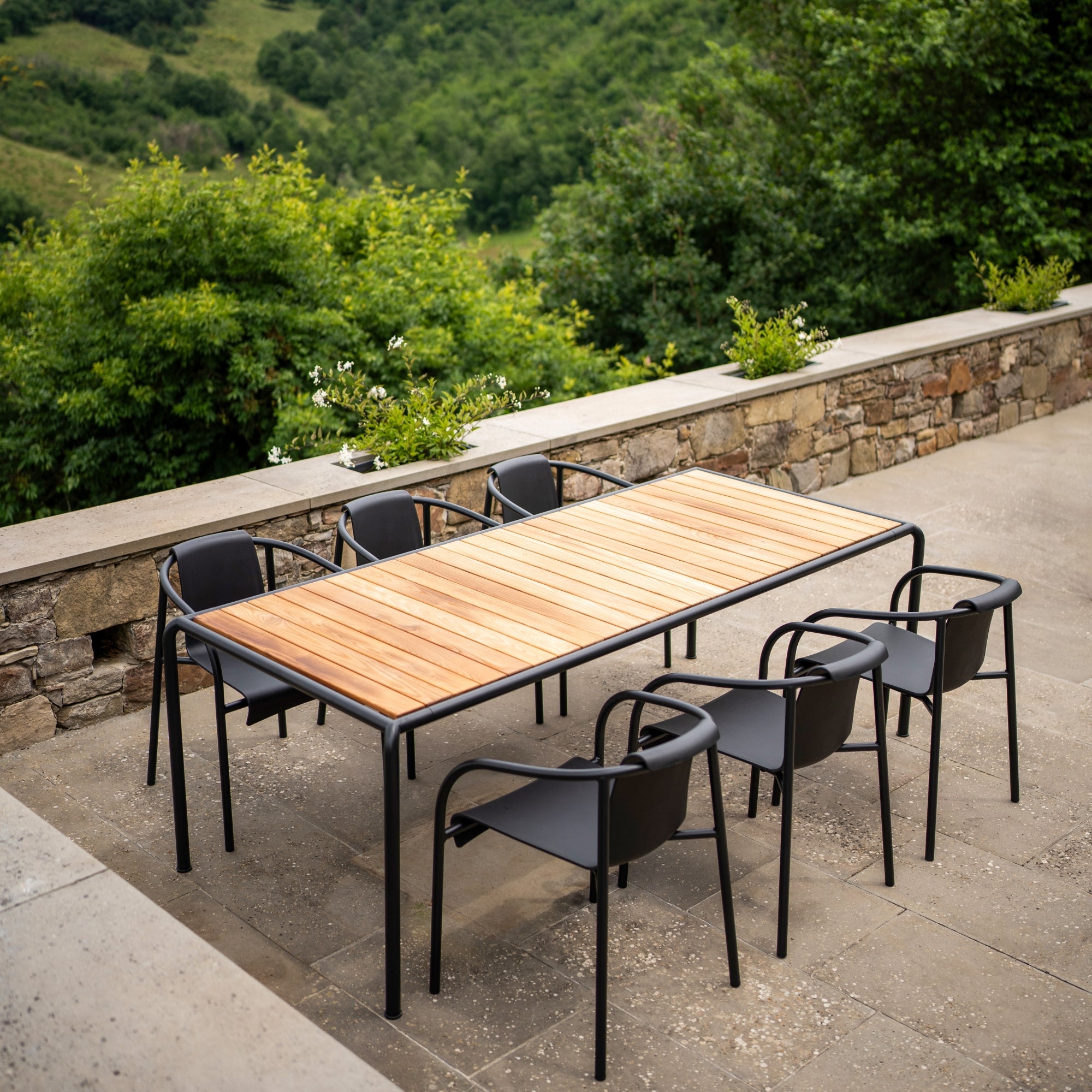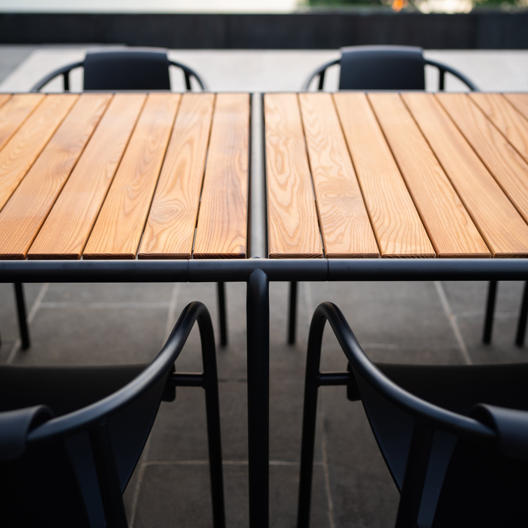 Les tables de repas extérieures Avanti de Houe, conçues par Henrik Pedersen, se distinguent par un design minimaliste et modulaire. Disponibles en plusieurs tailles, elles répondent aux besoins variés des petits repas intimes aux grandes réceptions. Les plateaux sont en frêne thermo-traité ou en pin certifié FSC®, assurant une robustesse exceptionnelle et une esthétique naturelle. Les pieds angulaires en acier noir thermolaqué offrent une stabilité optimale et maximisent l’utilisation de la surface du plateau. La modularité permet d'ajouter des extensions, offrant une flexibilité d’utilisation pour toutes les configurations.