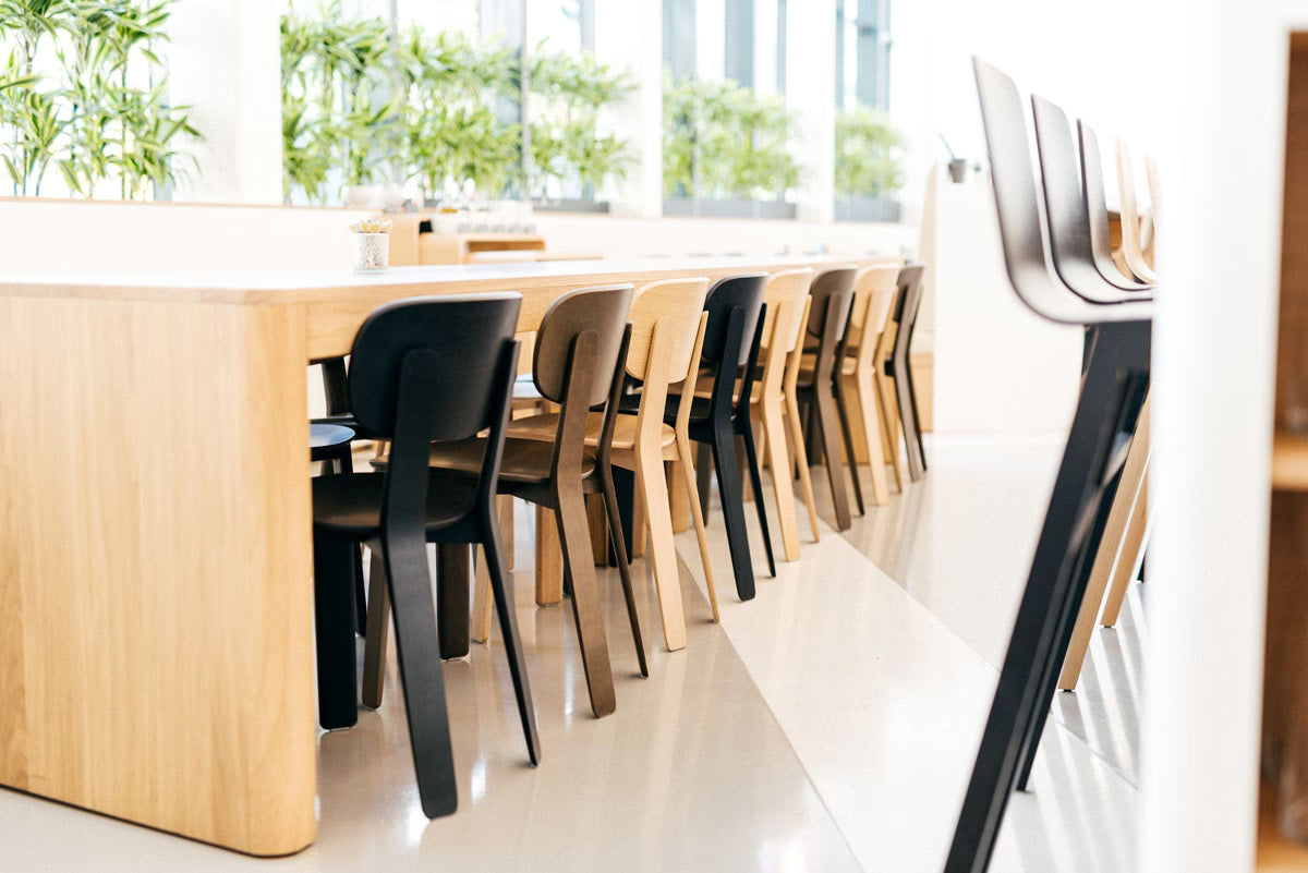 Chaise pour restaurant, Triku mise sur une structure en chêne qui assure une assise stable et une lecture claire autour de la table. Les proportions restent compactes pour optimiser la capacité sans gêner le service ; le dossier soutient naturellement le dos et le bord d’assise est adouci pour un contact confortable. Finition bois sobre pour une ambiance chaleureuse et professionnelle.