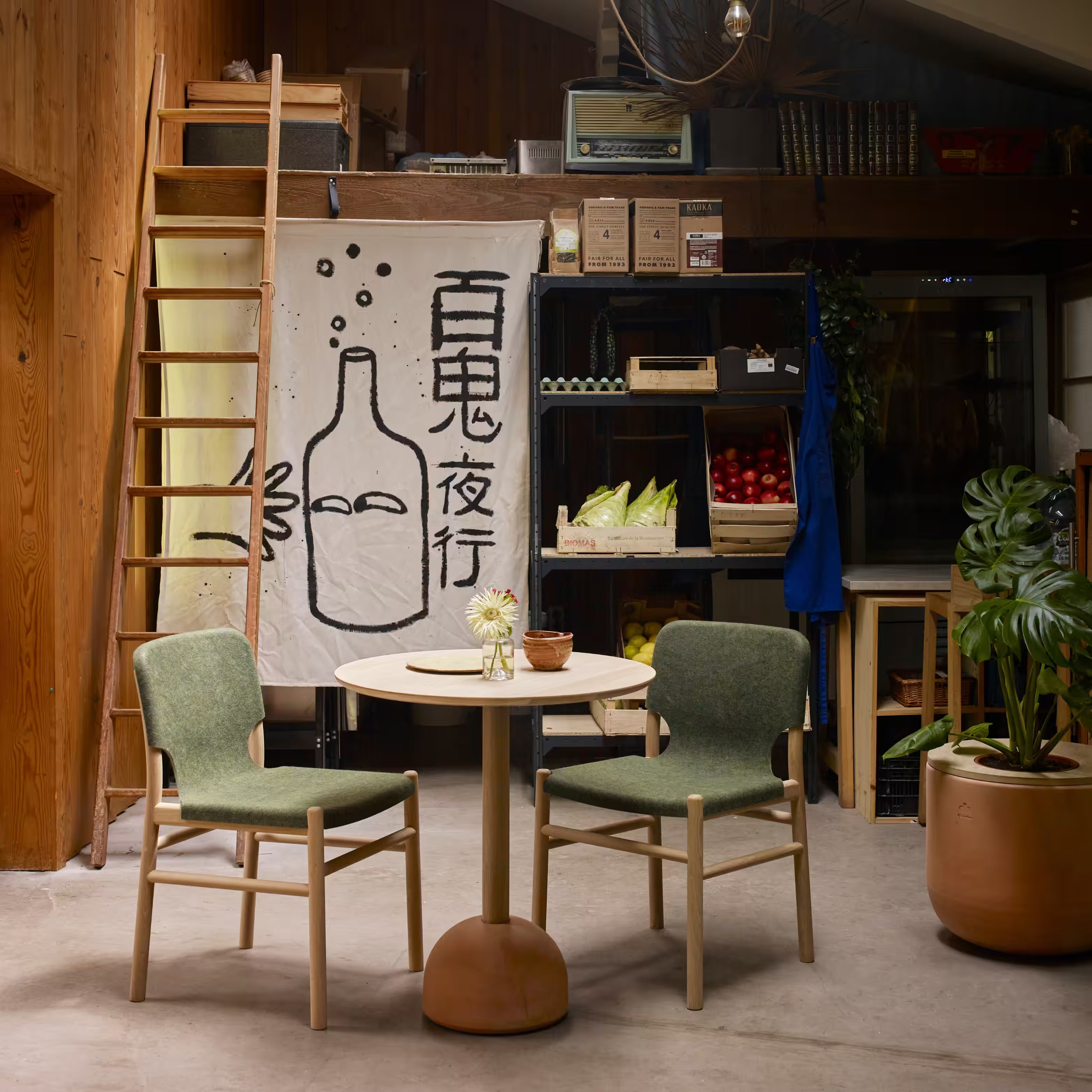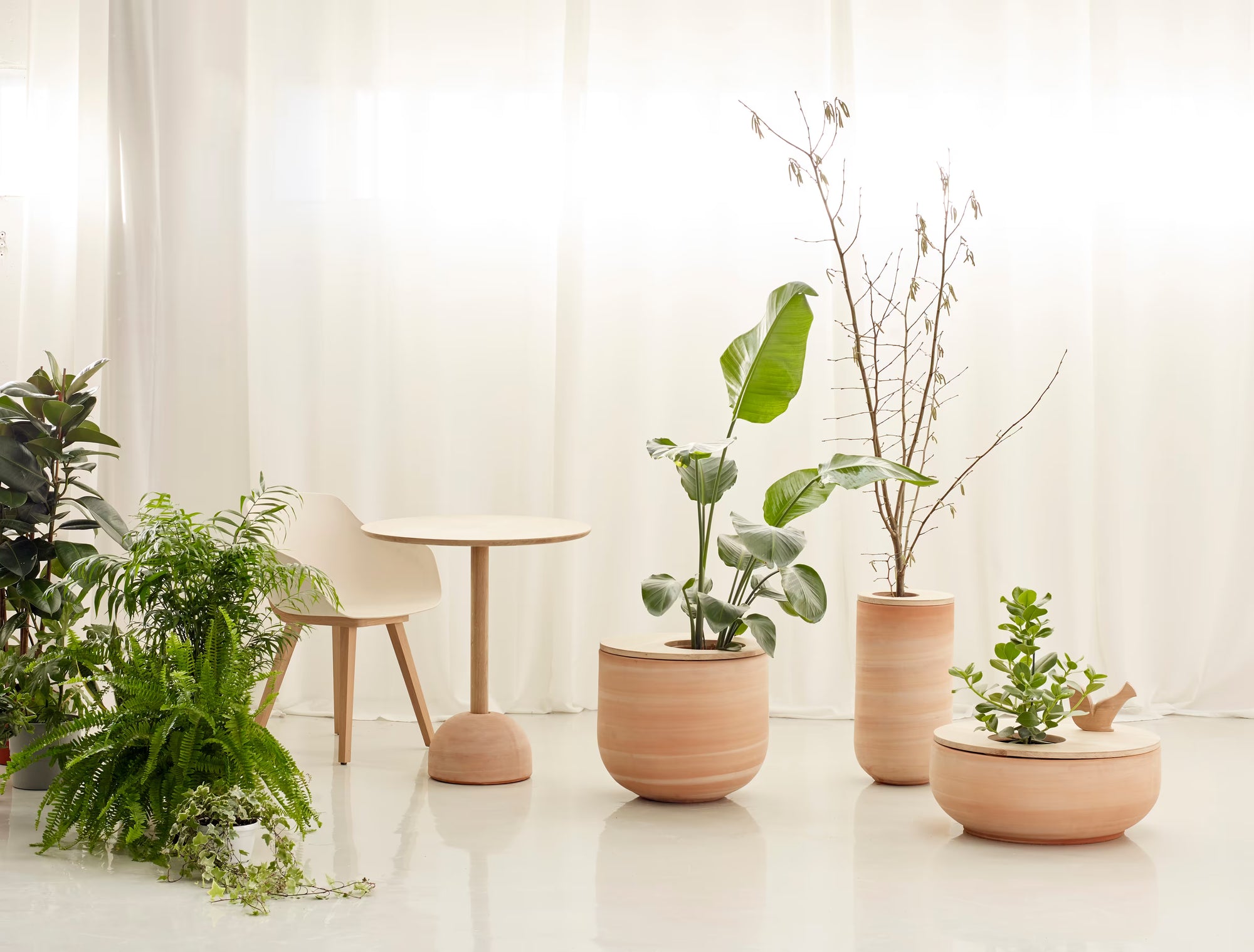 Finitions coordonnées pour accorder plateau, bois et terre cuite aux assises existantes. Usage intérieur. Entretien quotidien simple (chiffon doux légèrement humide).