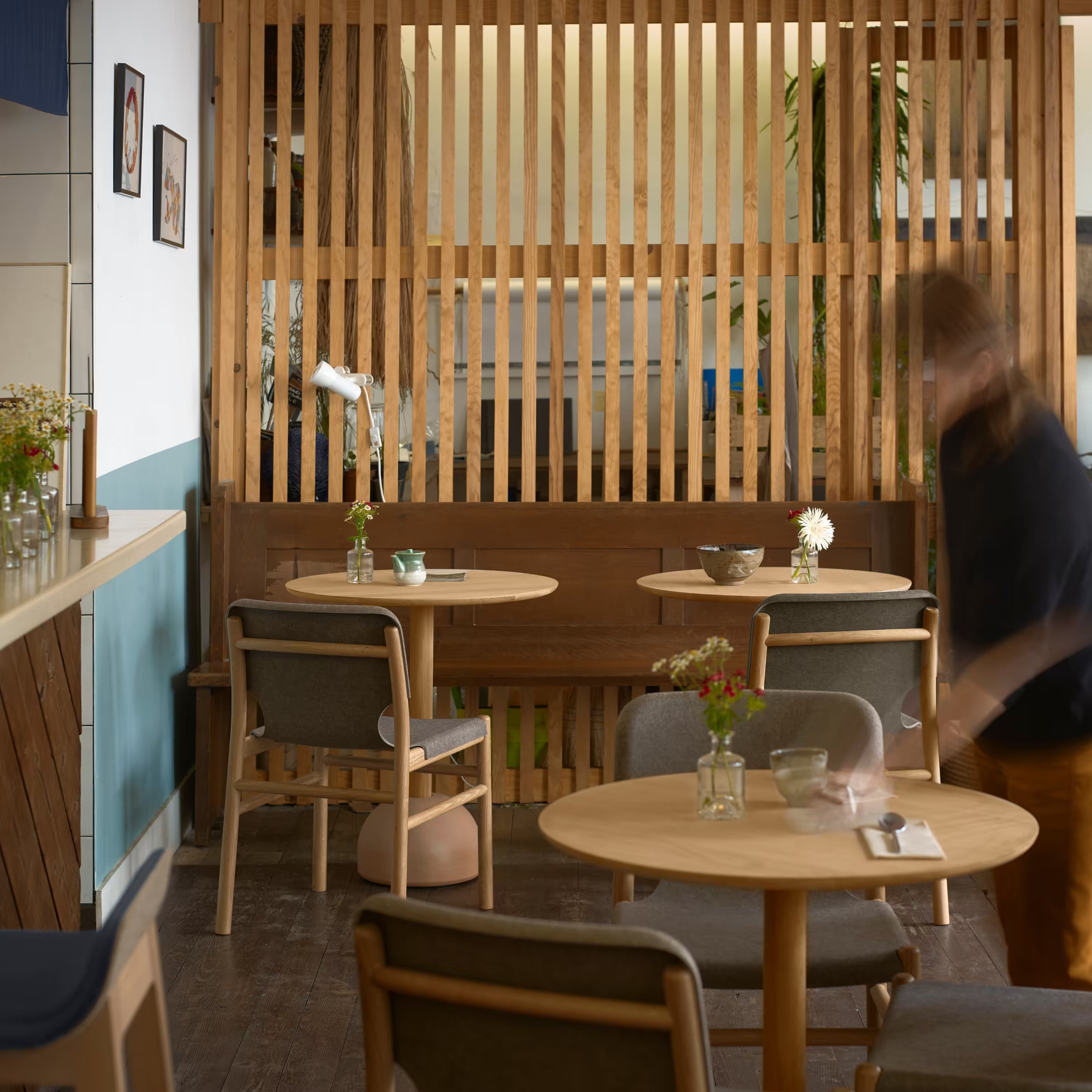 Pour plans 90–95 cm ; alternance appui-debout / tabourets ~65 cm ; alignements faciles, service fluide.